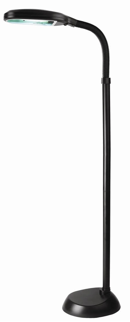 The Lite Source 1-light Aptos floor lamp features a large magnifying glass on an adjustable head. It uses a 27W FML bulb which is included.