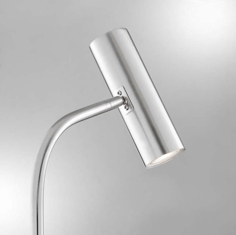 This stylish floor lamp features an adjustable LED spot light with a side table and a heavy marble base. Choose from three attractive finish options to match and space.