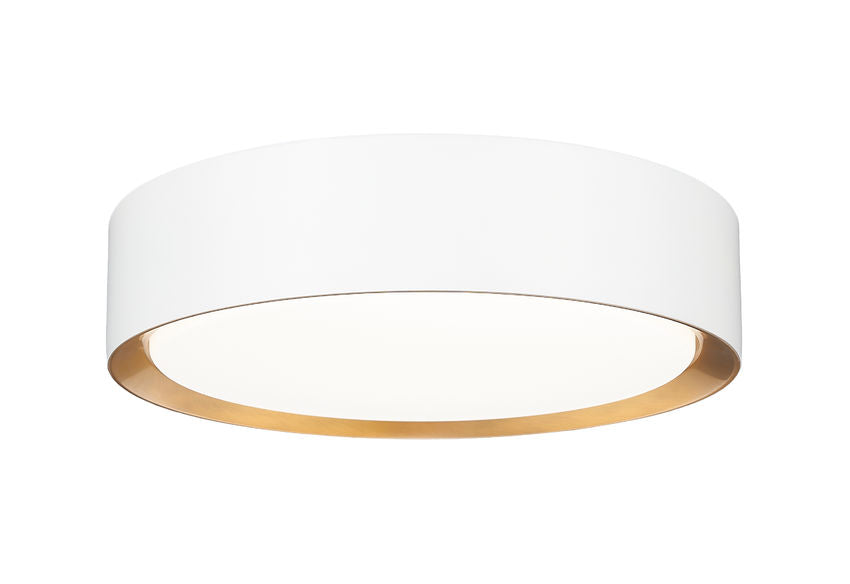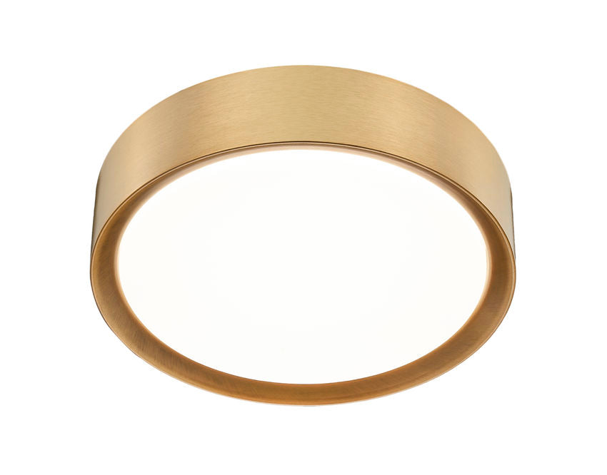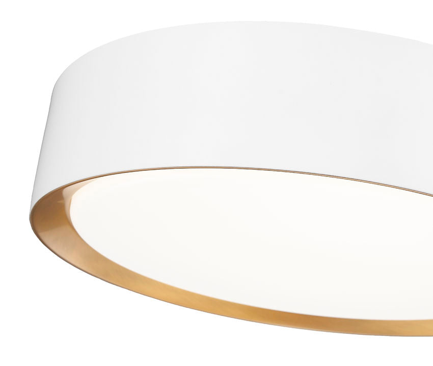 Frosted acrylic and a variety of metal finishes create a soft, refined look and feel for this modern one-light flush mount ceiling light. An inner finish of modern gold adds richness and warmth, perfect for understated, sophisticated decor. The light offers integrated LEDs for energy efficient illumination in any room.