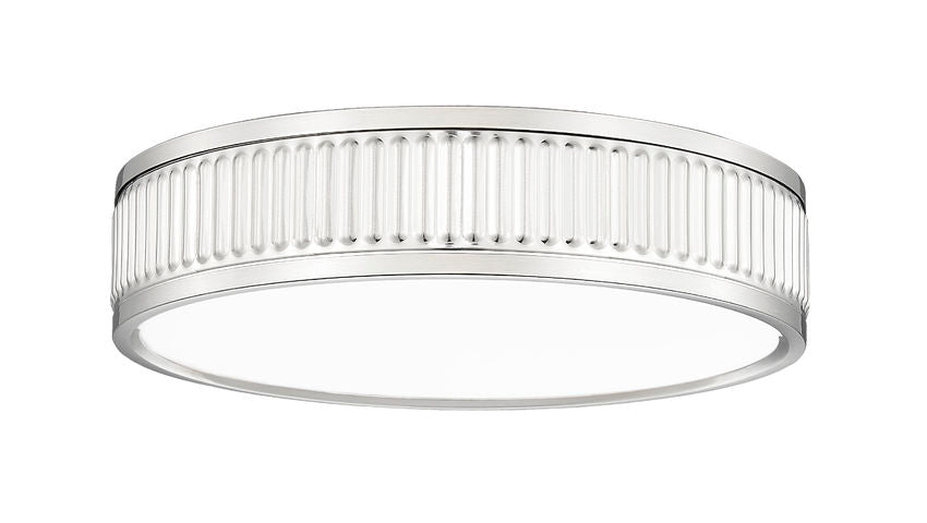 Clean and simple, this modern one-light flush mount ceiling light is available in 3 different finishes and sizes. Its ribbed framework creates a sense of texture and movement, while an integrated LED light source is an energy efficient choice in your bedroom or living area.
